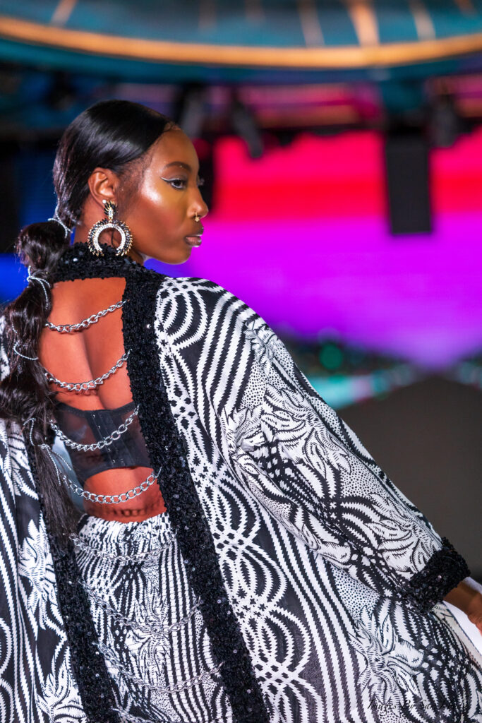 2Chique Boutique Women’s Black and White Ankara Print Kimono with Sequin Trim
