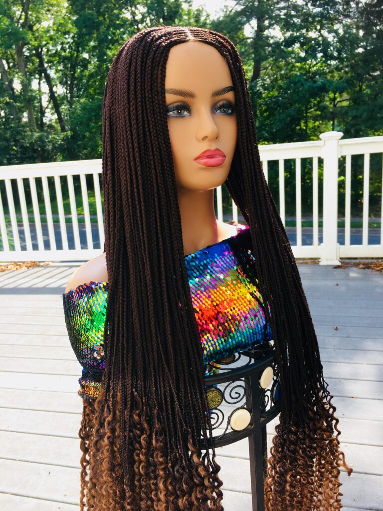 Cornrow Box Braided Wig with Spiral Curly Tips 40 Inches
