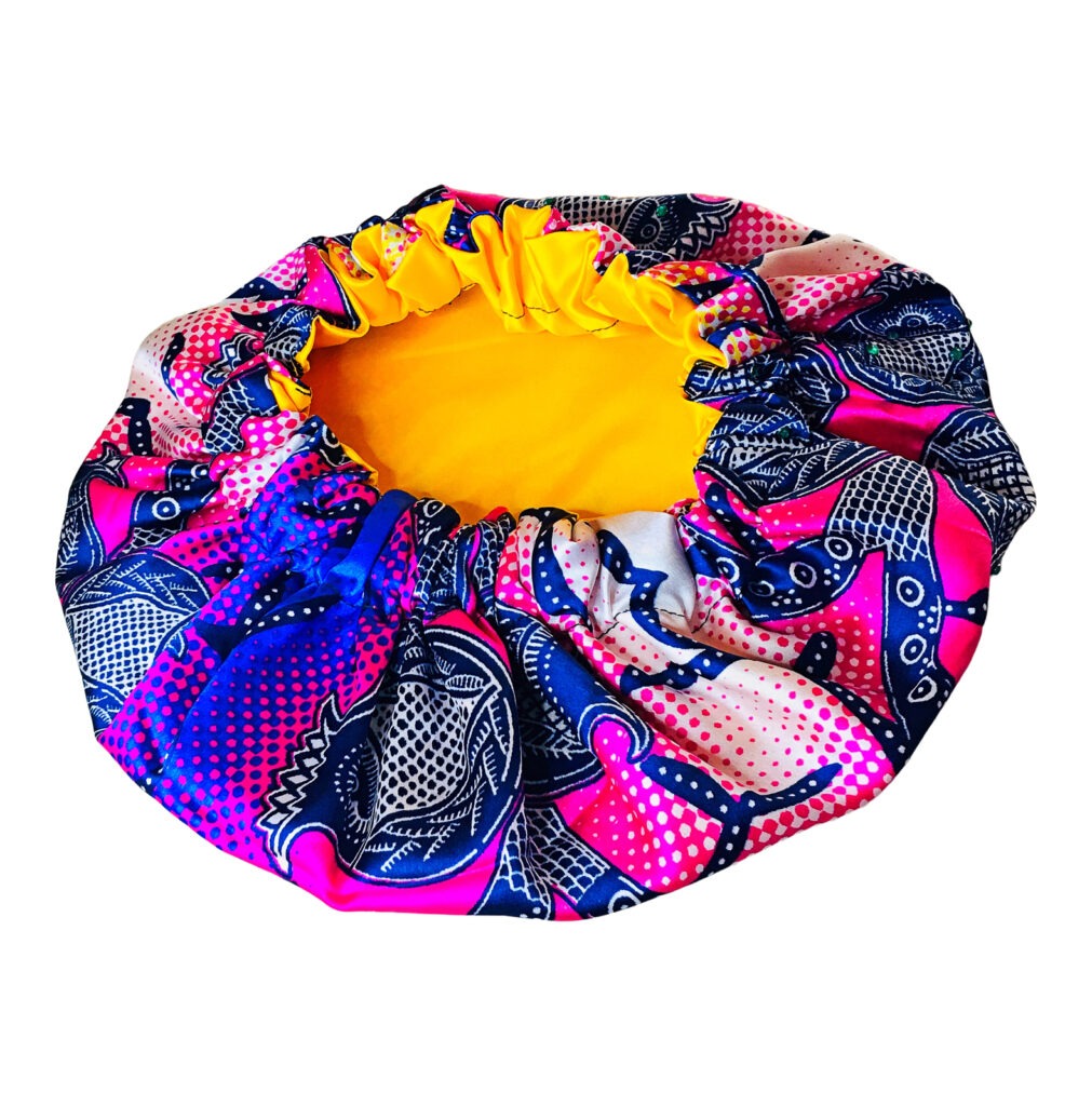 African Ankara Print Satin Bonnet Multi Color Patterns Pink/Multi