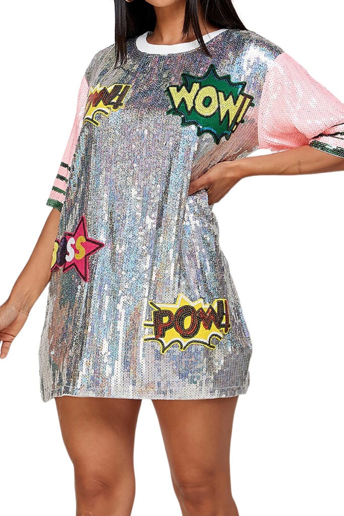Multicolor Sequin T Shirt Dress One Size Fits All