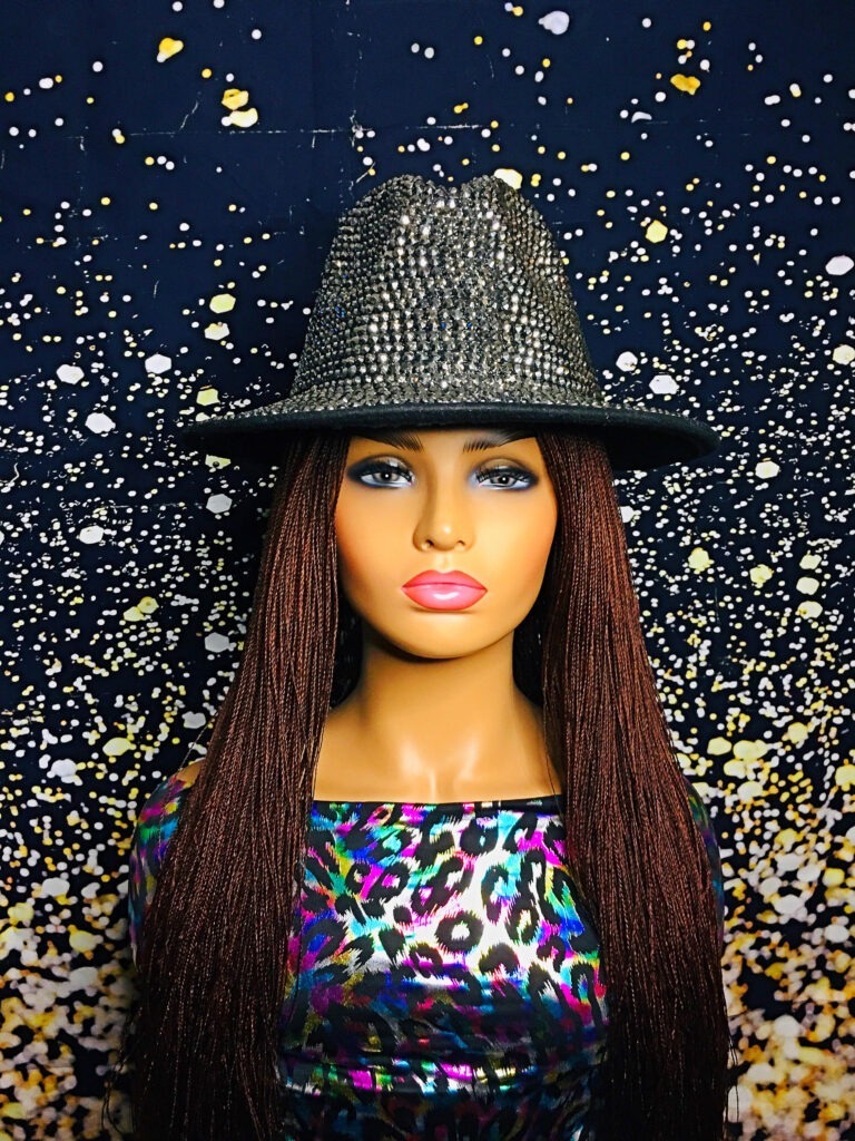 Extra Bling Black Rhinestone Embellished Wide Brim Fedora Hat