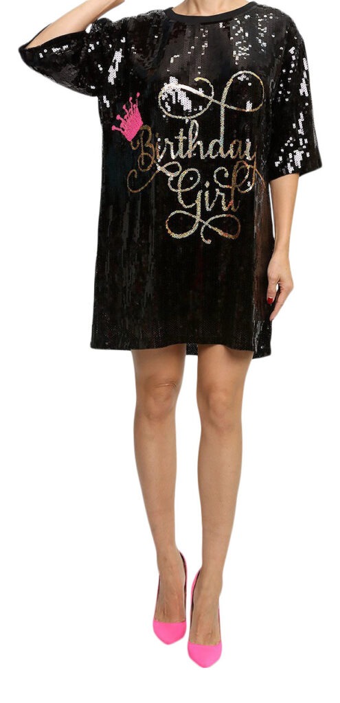 2Chique Boutique 2Chique Boutique Women’s Sequin T Shirt Dress Birthday Girl One Size Fits All Black