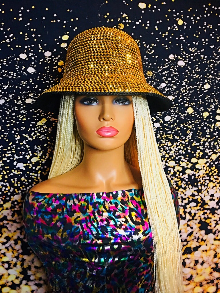 Extra Bling Black Rhinestone Embellished Wide Brim Fedora Hat