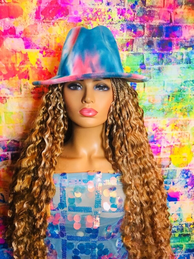 Pink and Blue Tie Dye Retro Panama Style Fedora