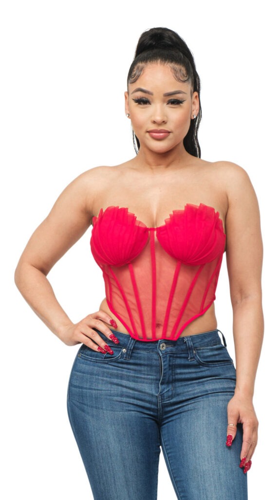 2Chique Boutique Women’s Mesh Front Pleated Corset Top