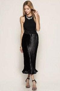 Trendy and Chic High Quality Metallic Foil Pleated Midi Skirt