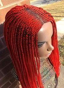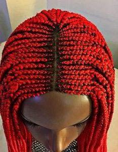 Beautiful Handmade Cornrow Box Braided Wig Color Red, 30 Inches