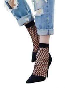 Looks Cool with Heels Unique Celebrity Inspired Fishnet Crew Socks Solid Elastic Cuff