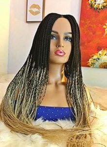 2Chique Boutique Women’s Handmade Cornrow Box Braided Wig Ombre Color 1b/613, 32 inches