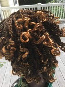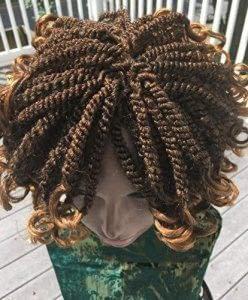 Unique kinky twist wig with curls at the end. No parting or lace closure on the wig