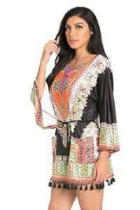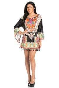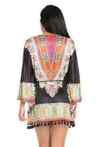 Aztec printed long sleeve tassel dress comfortable fit easy to wear dashiki print style unique dress great for any occasion