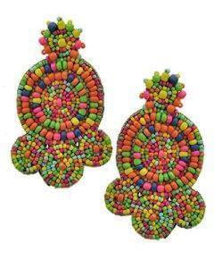2Chique Boutique Women’s Multi Color Acrylic Seed Bead and Black Suede Post Earring Set
