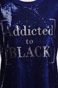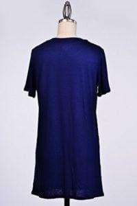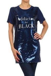 Sparkling Navy Blue Sequin Embellished Tunic scoop Neck with silver wording. Front sequin back solid comfortable fit easy to wear 95% Rayon 5% Spandex 100% Poly Made in the USA
