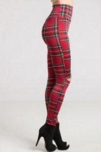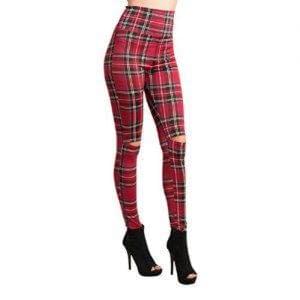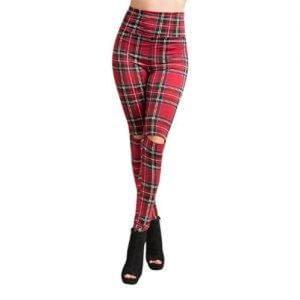 Chic and unique high waist plaid detail leggings full length soft comfortable fit unique look open knee