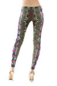 Beautiful Multicolored full length leggings trousers made in the USA comfortable fit east to wear great for all occasions 94% polyester 6% spandex