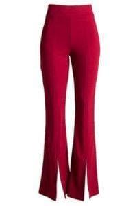 Unique High Waisted Full Length Slit Bottom Red Pants