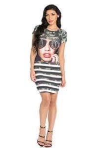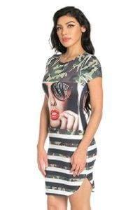cute and trendy fashion dress short sleeve camouflage print print design black and white stripe printed dress made in the usa