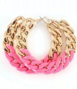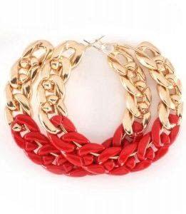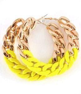 Neon Color Two Tone Linked Chain Hoop Earring/ Urban Style/ Size: 3″ Diameter/ Gold Tone/ Colors, Pink, Red, Blue, White, Black, Yellow.
