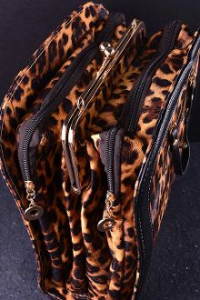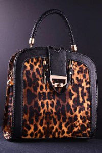 Unique Animal Print Handbag/2 Zip Top Closures/1 Twist Closure/Gold Tone Hardware/2 Detachable Leather Straps/Color: Brown/Animal Print/Black/Faux Leather/Size:11.5″Hx11.5″Wx5.5″D.