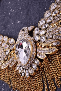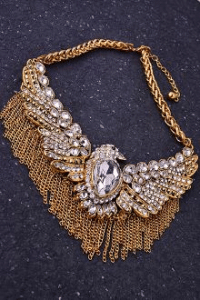 Beautiful/ Antique Gold Tone/Sparkling Rhinestone Eagle Necklace/Drop Chains/18″+EXT/Metal.