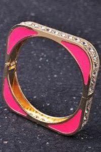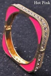 Hot Pink/Gold Tone/Rhinestone /Hinge /Fold-Over Bracelet/DIA: 3″/Lead and Nickel Compliant.