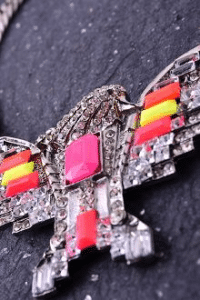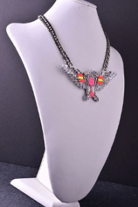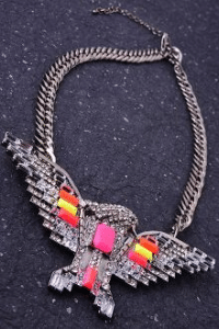 Rhodiumized/Clear Rhinestone/Eagle Necklace/Neon Stones/Silver Tone Metal/Necklace 18″+EXT.