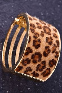 Fashion Bracelet/ Animal Print in Faux Fur/Gold Tone/Fold-over Bracelet.