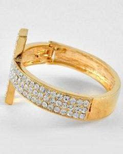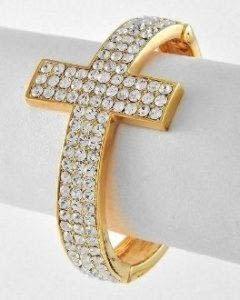 Gold Tone/Clear Rhinestone/Cross/Fold-over Bracelet/DIAMETER:2 3/4″/Width: 1 1/2″.