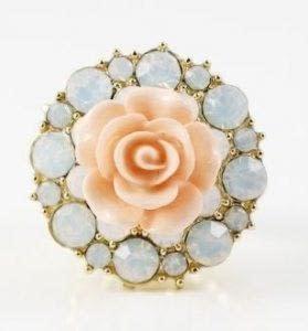 Fashion Ring/Metal/ Flower/Stretch/Peach/ Lead and Nickel Compliant/Colors: Peach and Turquoise.