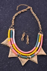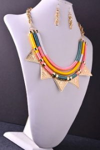 Multi Layered/ Fabric Necklace and Earring Set/ Thread String/ 2″ Drop/ Metal/ Size: Necklace Set 21″Long + EXT/ Color: Pink.